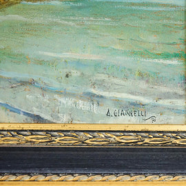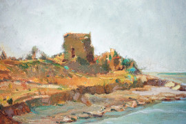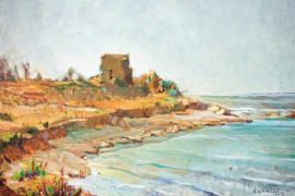 Scorcio costiero, olio su tela, cm 44x54, entro cornice.