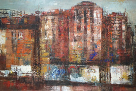 Scorcio di città, olio su tela, cm 40x5, firmato Bruno Biagi, entro cornice.