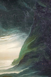Scorcio di costa in tempesta, olio su tavola, cm 21,5x15, XX secolo, entro cornice.