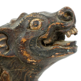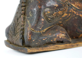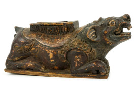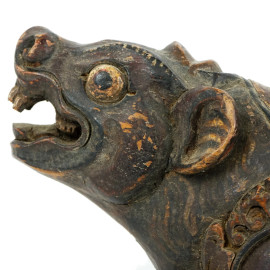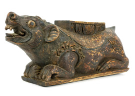 Scultura in legno intagliato a soggetto zoomorfo, cm h 15x33x9,5, Cina, fine XIX secolo, (difetti).