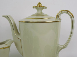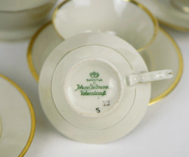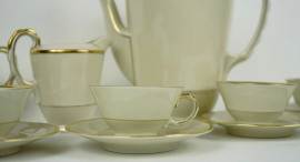 Servizio da caffè in porcellana bianca con finiture dorate, Germania, Vohenstrauss, Manifattura Johann Seltmann, XX secolo.