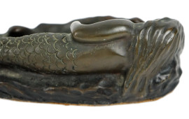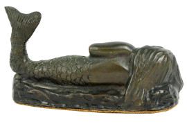 Sirena, scultura in bronzo brunito, cm h 6.5x20x10, firmato, (lievi difetti).