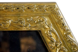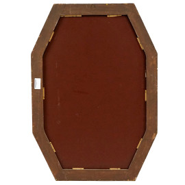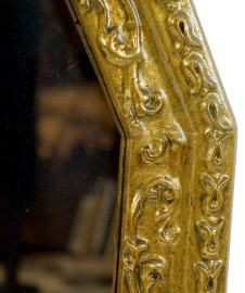 Specchiera di linea ottagonale in legno dorato, XX secolo, decori scolpiti a motivi fogliacei, cm 95x68.
