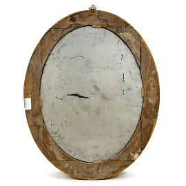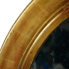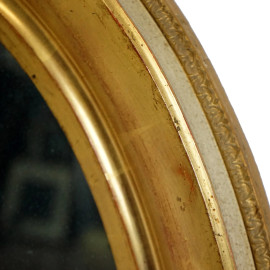 Specchiera di linea ovale in legno dorato e laccato, prima metà XX secolo, cm 86x64,5, (segni del tempo).