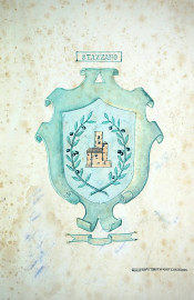 Stazzano, stampa a colori, cm 43x30,5, entro cornice, (macchie, difetti)