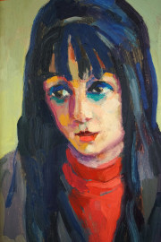 Ritratto di donna, olio su tavoletta, cm 18,5x14, entro cornice