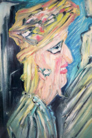 Vecchia signora, olio su tela, cm 50x40, entro cornice.