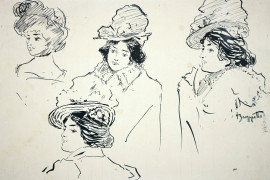 Studio di figure, penna su carta, cm 15,5x22,5, firmato P. Scoppetta, (difetti)