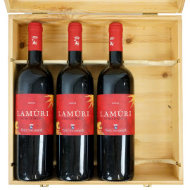 Tasca d'Almerita, tre bottiglie Lamùri 2002 Nero d'Avola, entro cassa in legno.