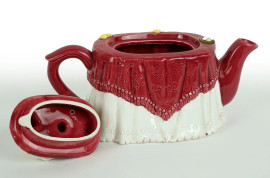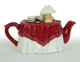 Teiera in ceramica policroma a forma di tavola imbandita, Western House Gifts The Village Collectables Manor House, cm 15x24,5x12