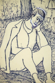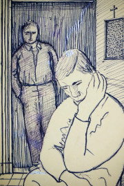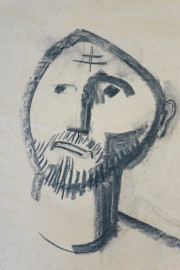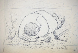 Lotto composto da cinque bozzetti ed una litografia ritoccata a mano raffiguanti soggetti diversi, misure max cm 49x42, (difetti)