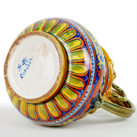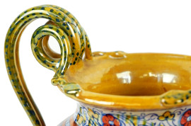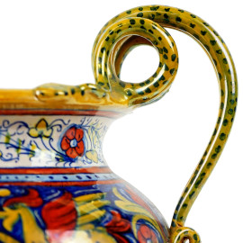 Vaso biansato in ceramica a lustro Gualdo Tadino, decoro a grottesche, prese a guisa di serpente, cm 21x25.