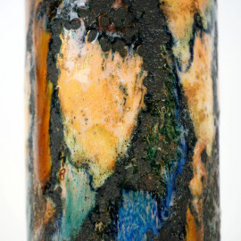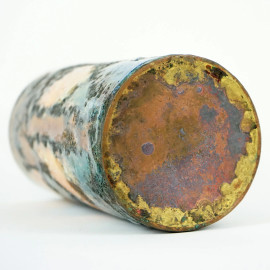 Vaso cilindrico in rame smaltato, cm h 20,5x10, XX secolo