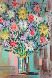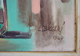 Vaso con fiori, olio su masonite, cm 50,5x40, firmato e datato L.Biccari 1960, entro cornice