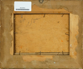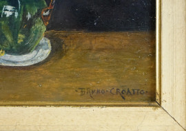 Vaso con mimose, olio su tavola, cm 13x18, firmato, entro cornice, (piccola caduta di colore)