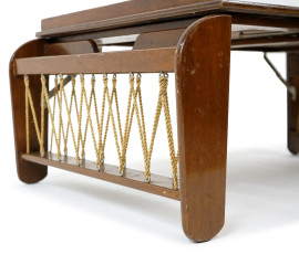 Vassoio portavivande in legno, cm 25x68x37,5, XX secolo, (difetti).