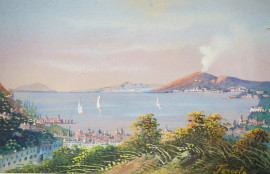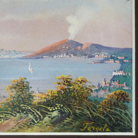 Veduta del Golfo di Napoli, gouache su carta, cm 11x16,5 circa, firmato Fergola, entro cornice