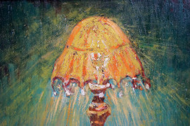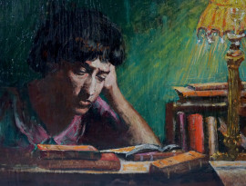 Veglia di esami, olio su tavola, cm 60x92,5, firmato Gaudenzi Pietro, entro cornice
