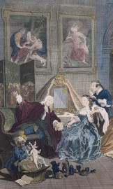 William Hogarth (1697-1764), Marriage alla mode - Plate 4, dis. W. Hogarth, engraved T.Cook, antica incisione acquarellata, cm 50x60