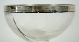 Alzata centrotavola di linea circolare in cristallo con bordo in argento, cm h 16x20, XX secolo