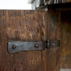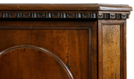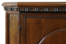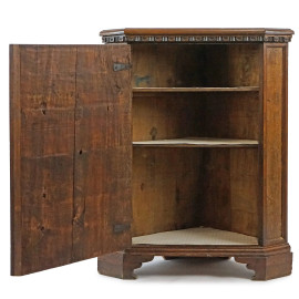 Angoliera in noce, XVIII secolo, fascia dentellata, fronte ad uno sportello, piedi a mensola, cm h 94x54, (difetti).