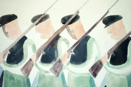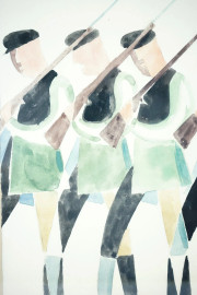 Anonimo artista futurista,la parata, acquerello su carta, cm 25,5x19, entro cornice