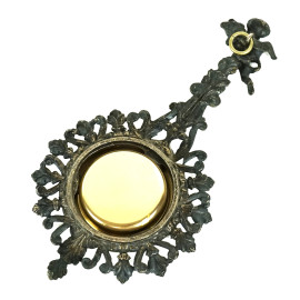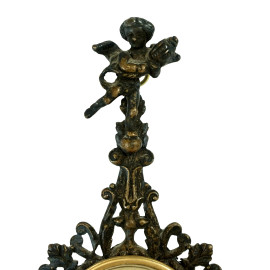 Antico barometro in bronzo brunito con decoro a forma di putto, cm 14x8, (segni del tempo).