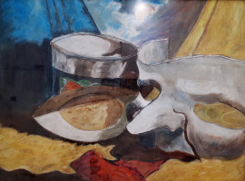 Artista del Novecento, Composizione con maschera, tecnica mista su carta, cm 43x57, con cornice