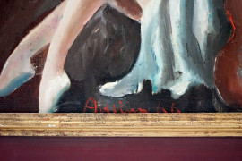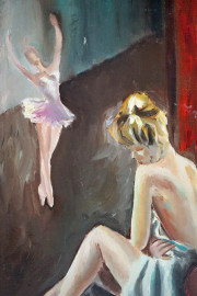 Ballerine, olio su tela, cm 60x30, firmato, entro cornice.