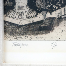 Tentazione, litografia, cm 53x70 circa, ES.1/7, entro cornice.