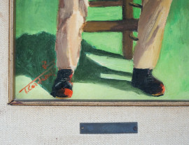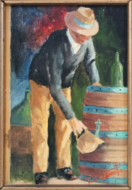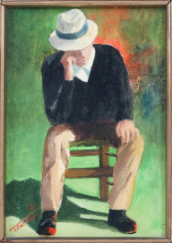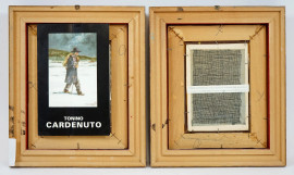 Due figure con cappello, olio su cartone telato, cm 18x13, entro cornici