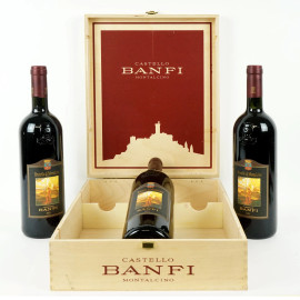 Castello Banfi, Brunello di Montalcino, tre bottiglie 2001, entro cassetta