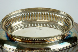 cestino in metallo argentato e traforato, marcato EPNS, cm h9,5x33x22,5