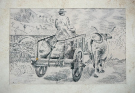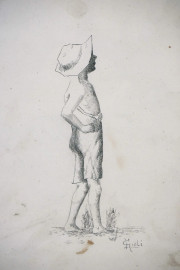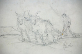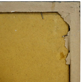 Cinque disegni e stampe di autori diversi entro un'unica cornice, misure ingombro cm 45,5x62,5