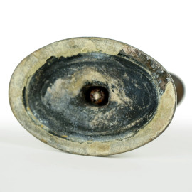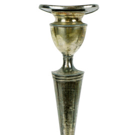 Coppia di candelieri in metallo argentato, cm h 21, XX secolo, (difetti).