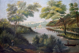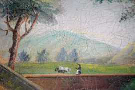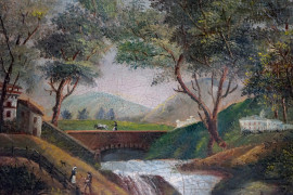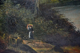 Coppia di paesaggi, olio su tela, cm 40x55,5, firma illegibile, entro cornici