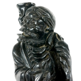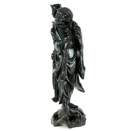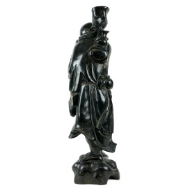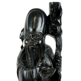 Coppia di sculture cinesi in legno ebanizzato raffiguranti saggi, cm h 57, XX secolo, (difetti).