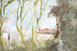 Paesaggio, olio su tela, cm 30x24, entro cornice