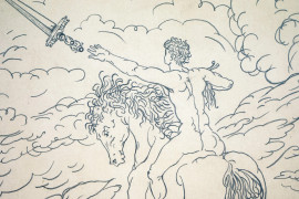 E il cielo gli diede una spada, matita su carta applicata su tela, cm 42x32, XX secolo.