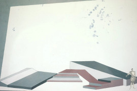 Egle De Milito (1960), La notte dell'epifania atto 2 scena 3, bozzetto per scenografia teatrale, siglato EDM, c, 17,5x25, entro cornice