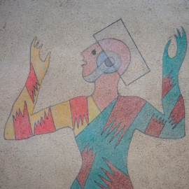 Figura, tecnica mista su carta, cm 27x21,5, XX secolo, entro cornice.
