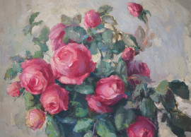 Fiori, olio su tela, cm 39x42,5, firmato, entro cornice
