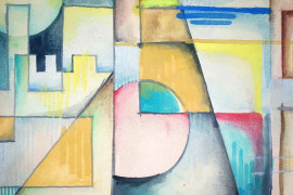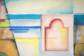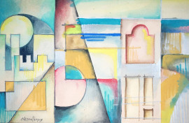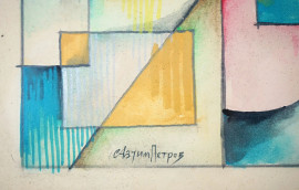 Futurismo Russo (XX sec.), Architetture futuriste, tempera su carta, cm 25x41, firmato in basso a sinistra, entro cornice