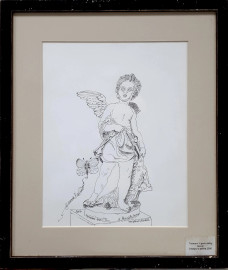 Gemma Hartmann (1940-2012), Il genio della caccia, china su carta, cm 30x24, firmato, con cornice