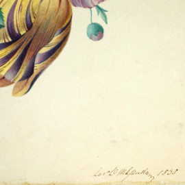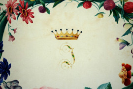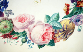Ghirlanda di fiori, acquarello su carta, cm 25x34, firmato, (difetti sulla carta).