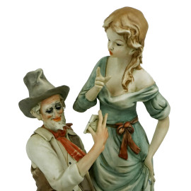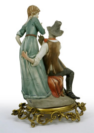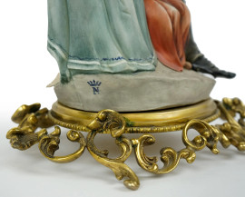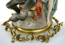 Gruppo in porcellana biscuit Capodimonte, cm h 28, base in bronzo dorato, firmata, XX secolo, (difetti).