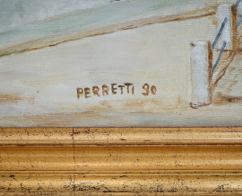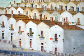 Italo Perretti (XX sec.), Ferrandina, olio su tela, cm 60x100, entro cornice