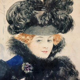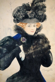 La parigina, acquerello su carta, cm 34x24,5, firma P. Scoppetta, entro cornice