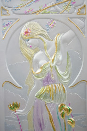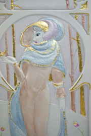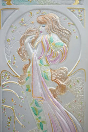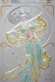 Le quattro stagioni, lastre in metallo argentato e smaltato, entro un'unica cornice, misure ingombro cm 62x111, XX secolo