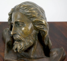 Testa di Cristo, scultura a rilievo in bronzo, cm h 20.